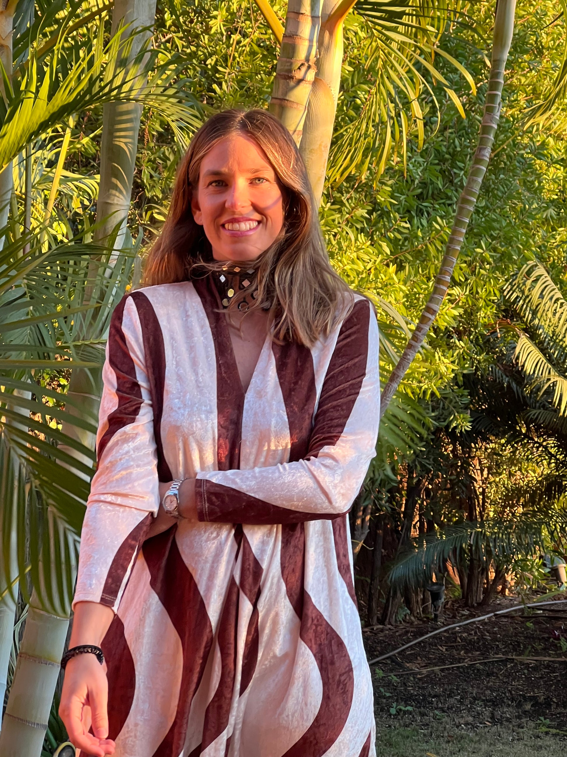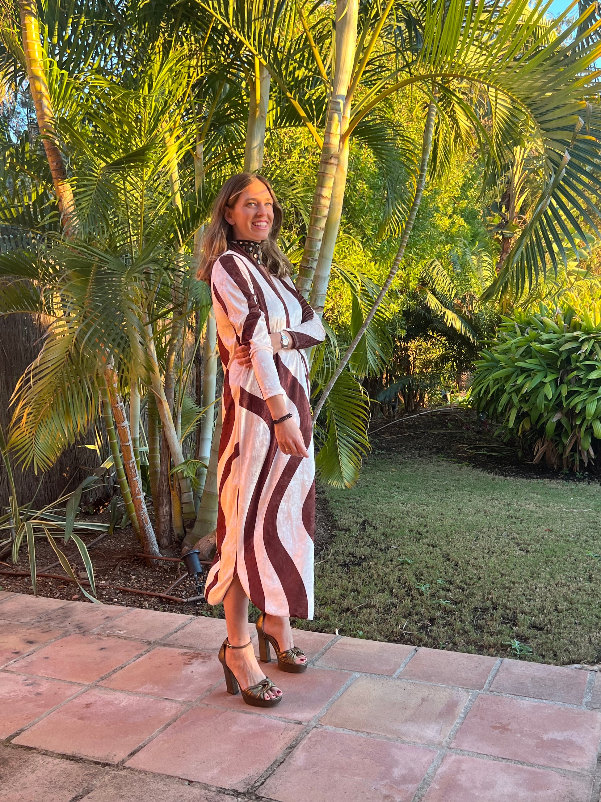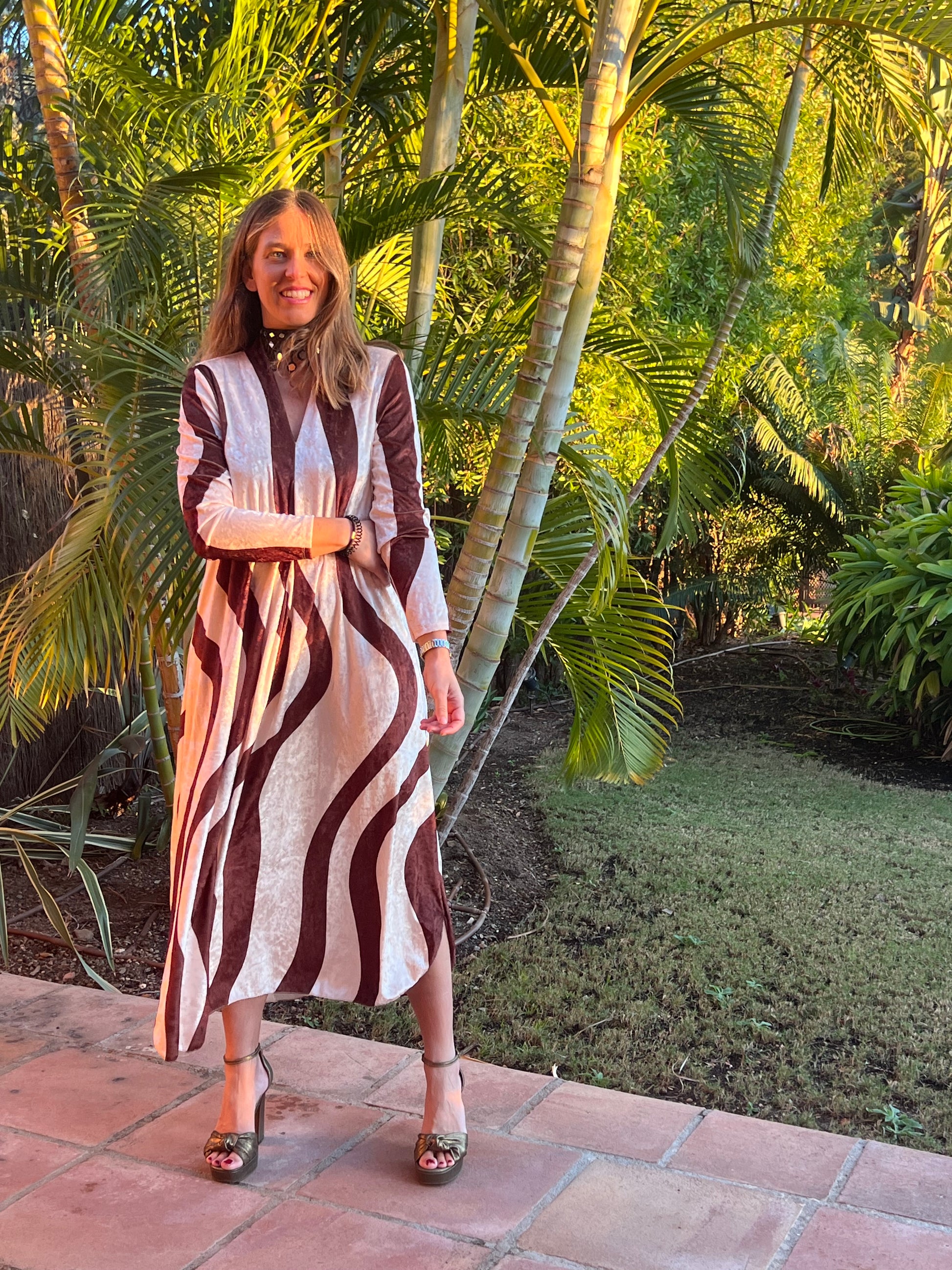 Nuestros vestidos de terciopelo, en estampado geométrico. En tonos camel y hueso. Ideal para todo tipo de eventos invernales.
